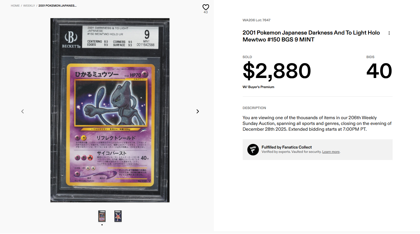 “I sent 3 cards with Giovanni and the result could not have been more satisfactory. Fast delivery, high bid and money received as stated. I would definitely recommend it and will be back again soon 💥”